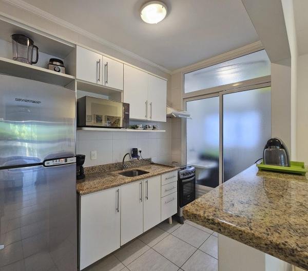 Este excelente apartamento oferece uma vista parcial para o mar e um ambiente sofisticado e confortável. Com 80 m² de área útil, o imóvel dispõe de 2 dormitórios, sendo 1 suíte, ambos equipados com armários embutidos. O living para 2 ambientes é integrado à cozinha totalmente equipada, criando um espaço moderno e funcional. Todos os ambientes são climatizados com ar-condicionado, e a área de serviço completa a praticidade do apartamento. Muito bem mobiliado e com 2 vagas de garagem cobertas, o apartamento também conta com um terraço agradável. A área de lazer do prédio inclui uma piscina compartilhada, proporcionando momentos de relaxamento e diversão. Os objetos pessoais serão removidos, deixando o espaço pronto para você desfrutar com estilo e conforto.
