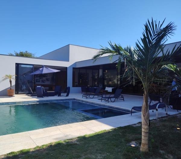 Casa com arquitetura moderna, localização privilegiada, conforto e privacidade, em condomínio fechado com portaria 24h. Com 4 suítes, sendo 1 suíte master com closet, ar condicionado, sala de tv, sala de estar com lareira, sala de jantar, salão de jogos, adega, sala de reunião, cozinha completa, espaço gourmet com churrasqueira, chopeira, piscina com hidro e aquecimento solar, quintal gramado. Situado em uma área estrategicamente bem localizada na cidade de Porto Feliz, o Empreendimento possui em seus 601.894,78 m² de área total, 362 lotes residenciais e comerciais que variam entre 600 m² e 1500 m². Seus moradores desfrutam de um completo Sistema de Lazer, com paisagismo diferenciado e praças projetadas para convívio, assinados pela paisagista Maria Luiza Aceituno. A Área de Lazer possui dois campos de futebol, duas quadras poliesportiva, duas quadras de tênis, academia, piscina aquecida com raia, playground e salão de festas. Destaque para a extensa Área Verde que envolve todo empreendimento, grande lago com deck e portaria 24h com arquitetura moderna, assinada pelas arquitetas Mariana Guerini e Patrícia Barducco.