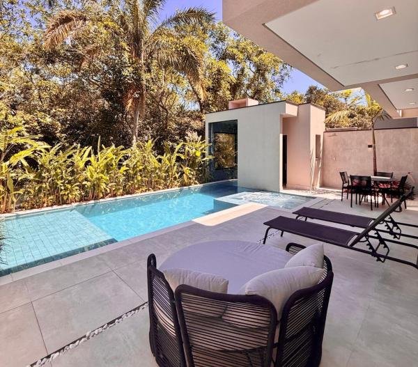 Esta residência extraordinária é o ápice do luxo e sofisticação, perfeita para quem deseja viver em grande estilo. Com 6 suítes espaçosas, uma suíte de apoio para funcionários, a casa oferece conforto incomparável. A área gourmet e a cozinha, integradas à casa, são um verdadeiro convite para momentos de convívio. Com equipamentos de alta qualidade, este espaço é perfeito para receber amigos e familiares. A área de lazer é espetacular, conta com uma piscina de 31,23 m² com prainha, sauna, spa, churrasqueira e lavabo. Com 399,58 m² de terreno e 315,24 m² de área construída, a casa ainda oferece 4 vagas de garagem. Esta propriedade é o refúgio perfeito para quem busca o melhor da Riviera de São Lourenço.