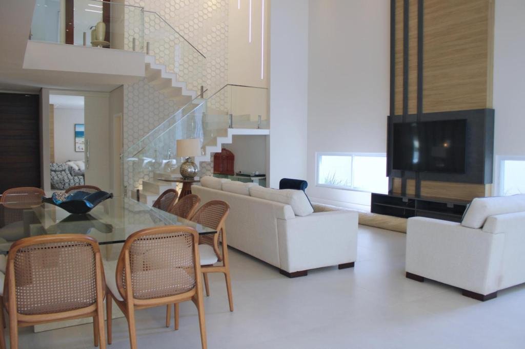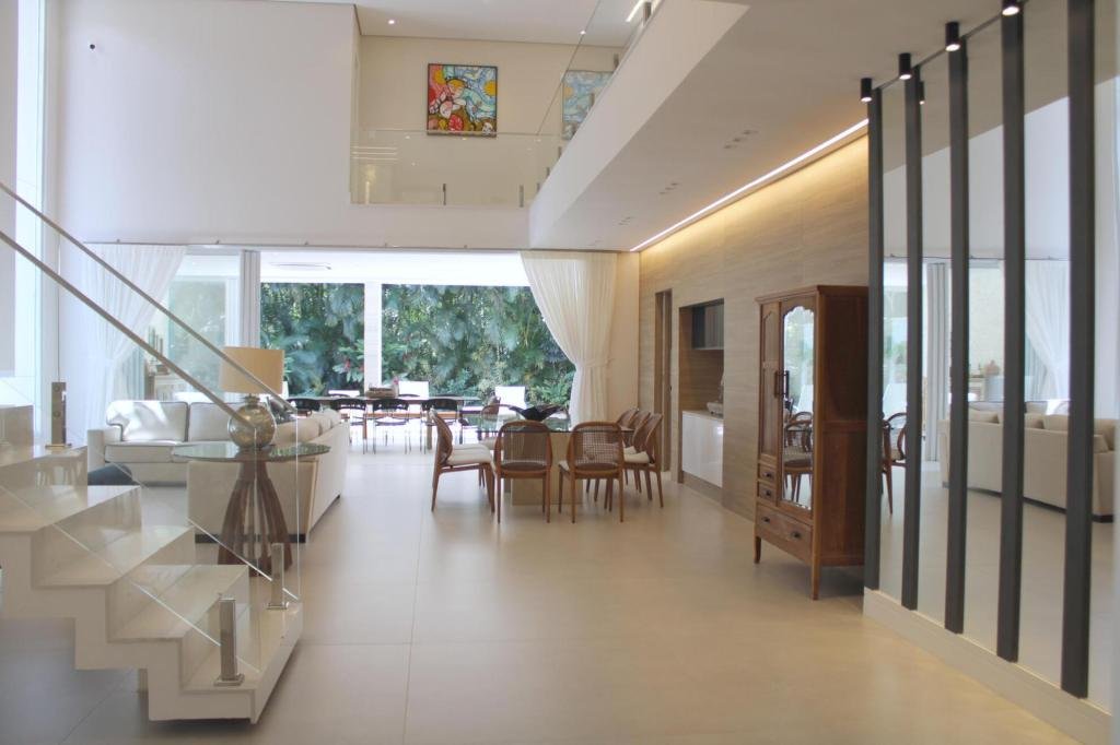 Se o seu sonho é viver com o máximo de conforto, luxo e privacidade, esta casa em Riviera de São Lourenço é a realização perfeita. Com um projeto imponente, ela foi pensada para quem não abre mão de receber bem e ter um espaço de lazer completo para a família toda. Com 7 suítes no total, a casa oferece acomodação de sobra para todos os seus convidados. No pavimento inferior, uma suíte e uma sala íntima garantem privacidade e acessibilidade, enquanto no pavimento superior, 6 suítes espaçosas são o refúgio perfeito para noites tranquilas. A propriedade ainda conta com uma suíte exclusiva para empregados, otimizando a organização da casa. Os ambientes sociais são um show à parte. Um amplo living para 3 ambientes oferece versatilidade e a possibilidade de criar múltiplos espaços de convívio, enquanto o Home Theater é o local ideal para maratonar filmes com a família em total privacidade. Para o lazer, a diversão é completa e sofisticada. O espaço gourmet com churrasqueira, chopeira e máquina de gelo é perfeito para as celebrações. O relaxamento é garantido no spa com hidromassagem, na sauna integrada com a piscina aquecida, que ainda conta com uma ducha para refrescar. Esta casa não é apenas um imóvel, é um convite para viver momentos inesquecíveis em um cenário de puro luxo e conforto. Área total do terreno: 577,50 m² e sua área construída é de 507,00 m². Que tal agendar uma visita e se encantar com cada detalhe?