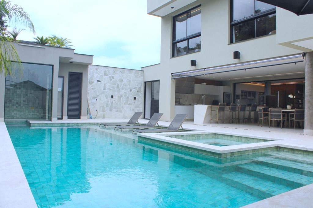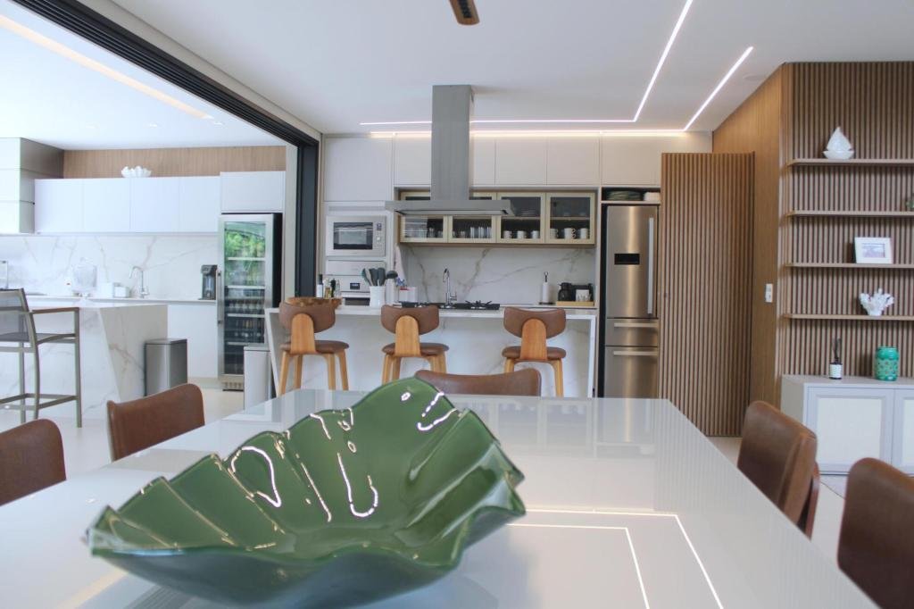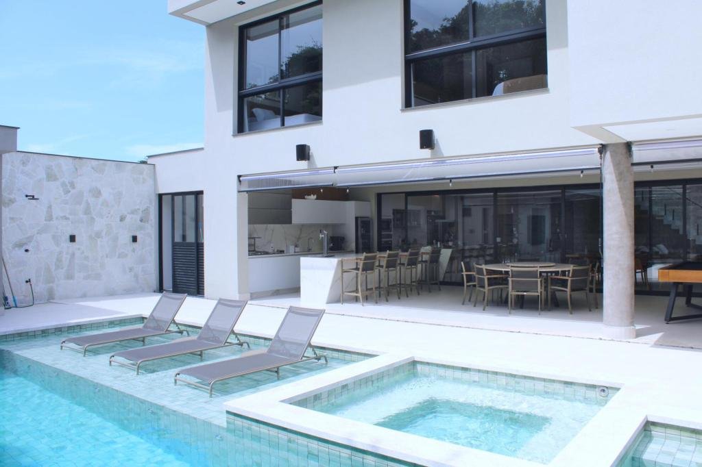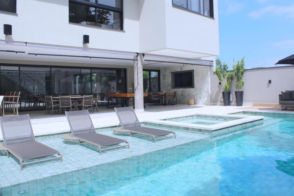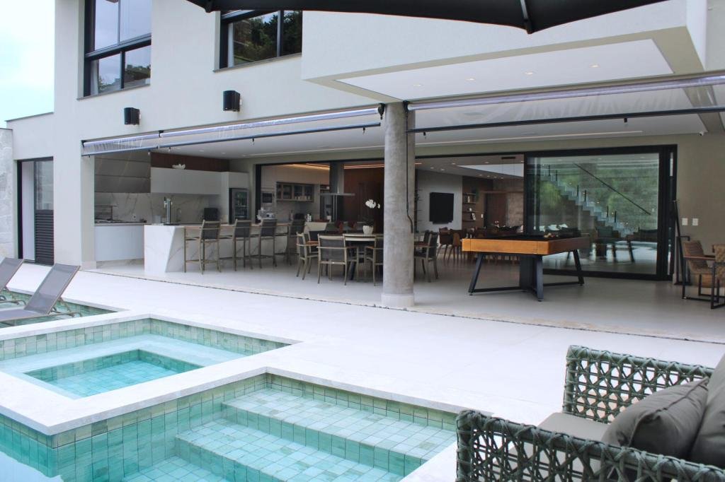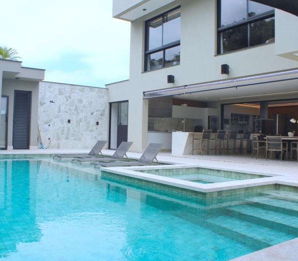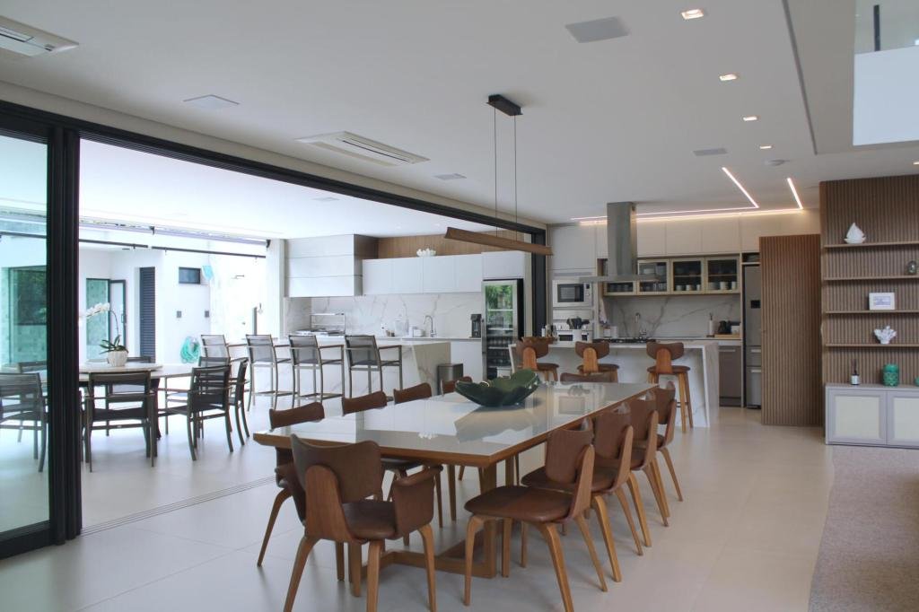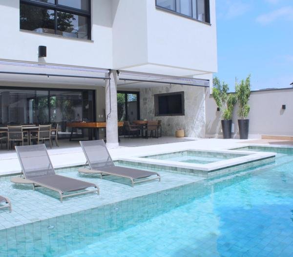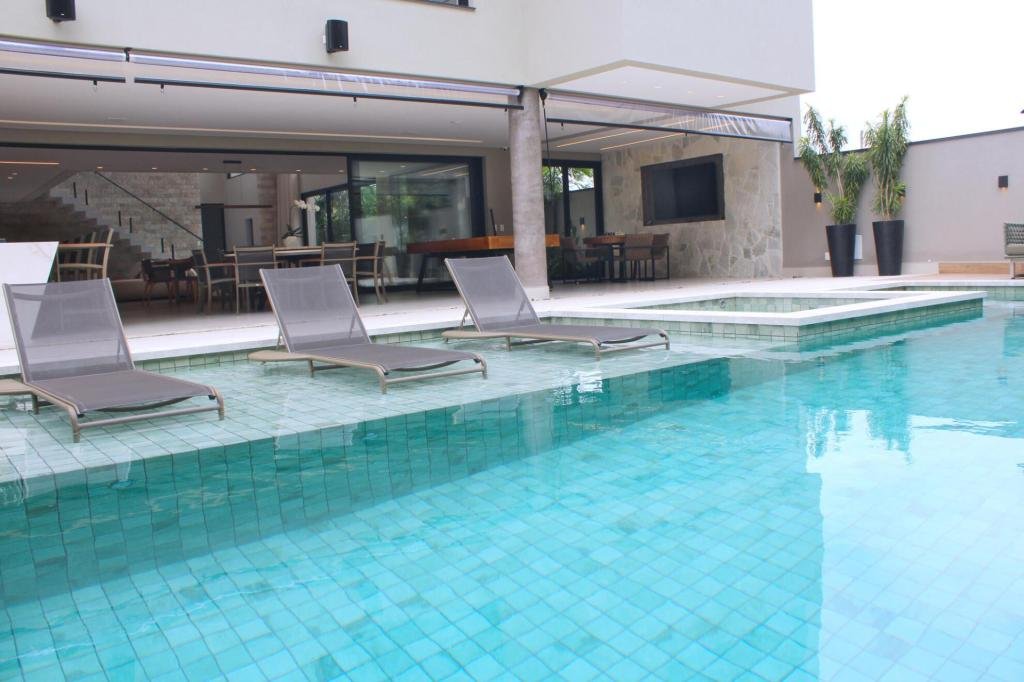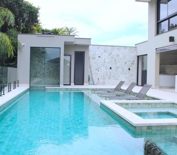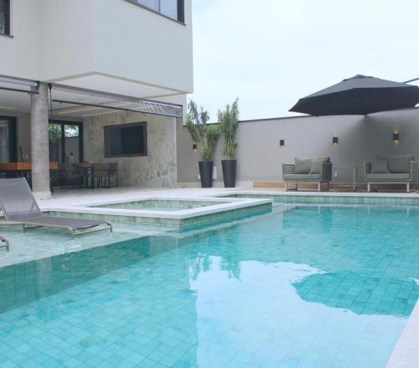 Esta residência imponente foi projetada para acomodar grandes famílias com o máximo de conforto e eficiência. São 6 amplas suítes, todas com acabamentos de altíssimo padrão, além de uma suíte de apoio completa para funcionários (com ar-condicionado), garantindo total discrição e funcionalidade para o dia a dia. A casa é um exemplo de inteligência tecnológica e sustentabilidade: equipada com sistema de energia solar (fotovoltaica), ela oferece alta performance energética para manter todo o conforto com baixo custo. A porta principal conta com fechadura eletrônica, a garagem já possui carregador para carros elétricos e toda a propriedade é protegida por um sistema de monitoramento de última geração. O lazer é o ponto alto deste imóvel, com espaços integrados pensados para o entretenimento: * Piscina Aquecida (59,32 m²): Um oásis com hidromassagem e cascata, perfeito para relaxar em qualquer estação do ano. * Espaço Gourmet & Jogos: Equipado com chopeira profissional, mesa de bilhar e uma adega exclusiva para os apreciadores de vinhos. * Experiência Audiovisual: Um Home Theater dedicado, proporcionando momentos de cinema sem sair de casa. Com 450,36 m² de área construída em um terreno generoso de 617,22 m², o imóvel oferece soluções inteligentes de organização: * Roupeiro estratégico para suporte ao enxoval das suítes. * Lavanderia ampla e funcional. * Ambientes climatizados e com excelente ventilação natural. Além de tudo isso, o imóvel é entregue com o que há de mais sofisticado no mercado de luxo: * Mobiliário Breton: Design e elegância em cada ambiente. * Móveis Planejados Florense: Qualidade impecável com 10 anos de garantia. * Eletrodomésticos Elettromec: Alta performance na cozinha, também com 10 anos de garantia. Ficha Técnica * Dormitórios: 6 Suítes + 1 Suíte de Serviço. * Energia: Sistema Solar Fotovoltaico (Economia e Sustentabilidade). * Área Construída: 450,36 m² | Terreno: 617,22 m². * Piscina: 59,32 m² (Aquecida, Hidro e Cascata). * Tecnologia: Carregador Elétrico, Fechadura Eletrônica e Monitoramento. * Lazer: Home Theater, Adega, Chopeira e Bilhar. * Mobiliário & Planejados: Breton e Florense (10 anos de garantia). * Cozinha: Elettromec (10 anos de garantia).