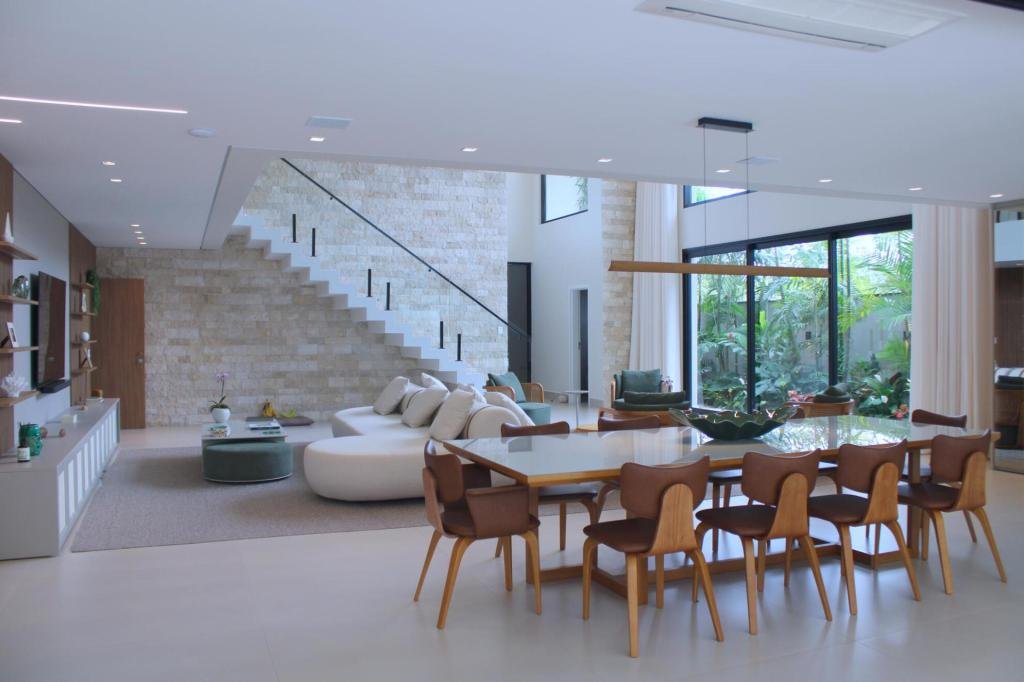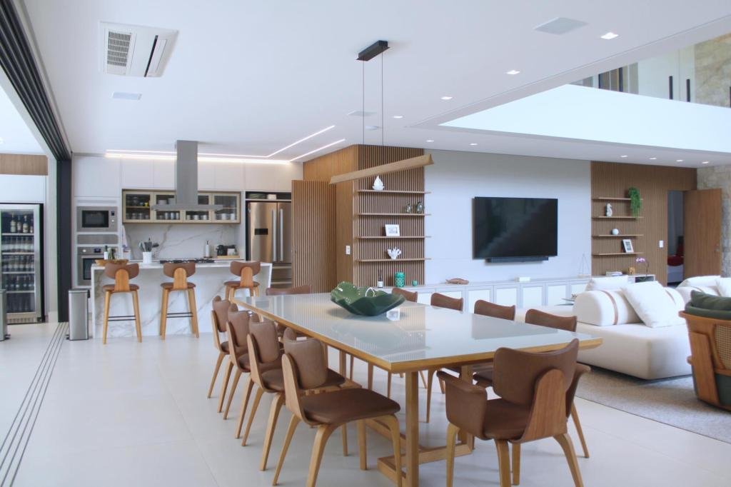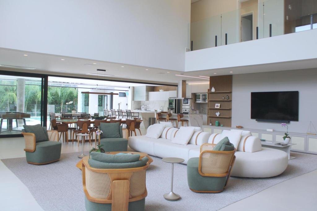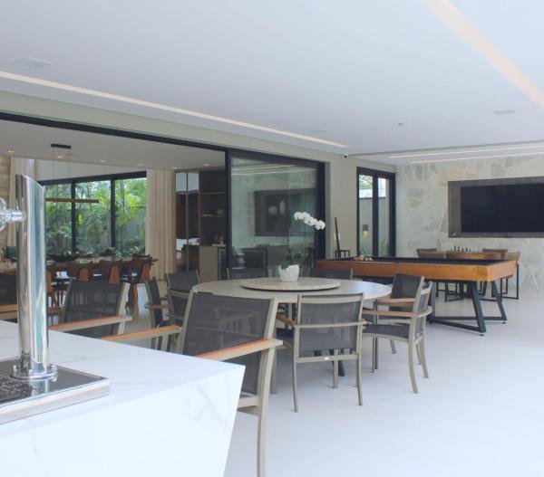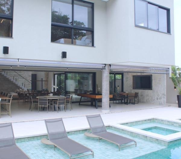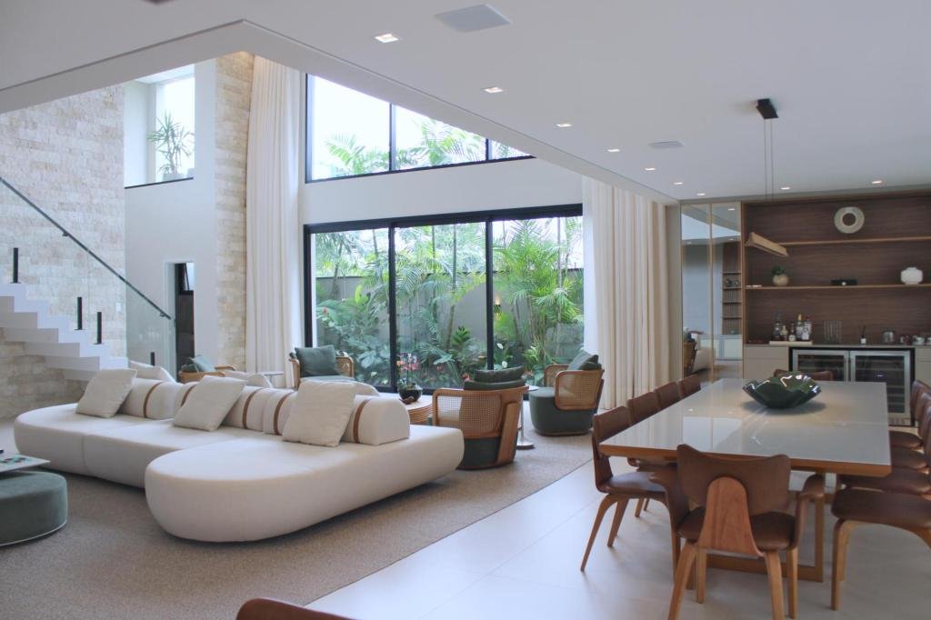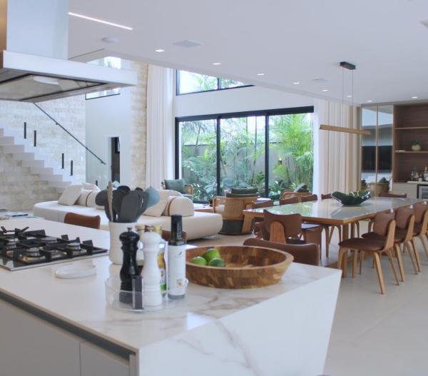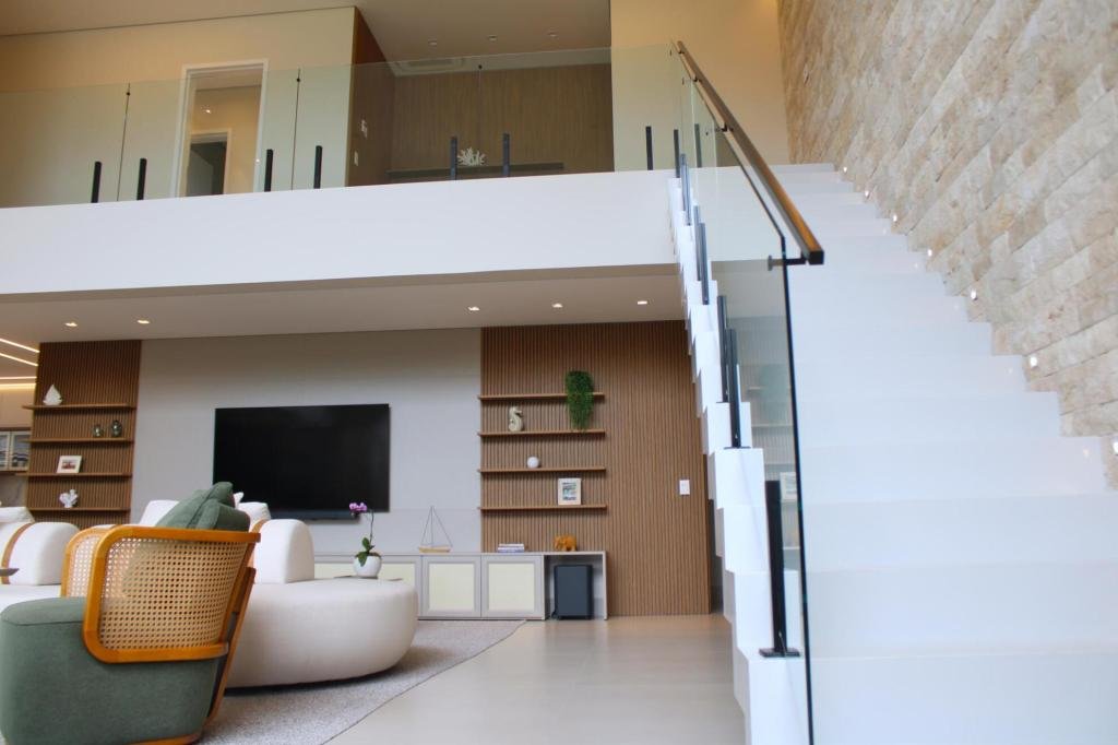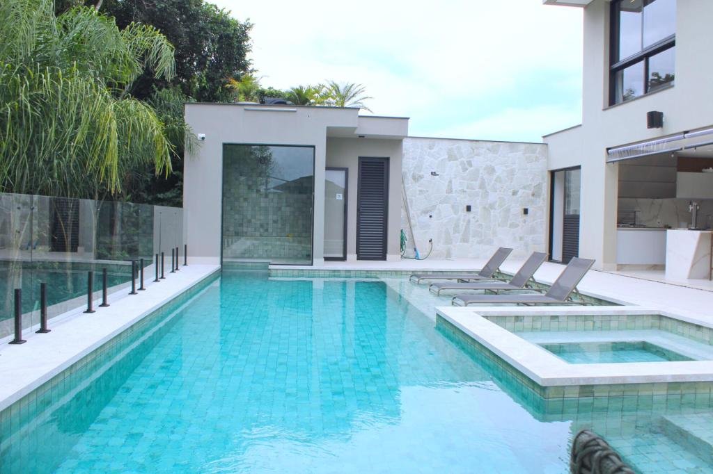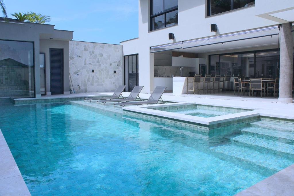 Esta residência imponente foi projetada para acomodar grandes famílias com o máximo de conforto e eficiência. São 6 amplas suítes, todas com acabamentos de altíssimo padrão, além de uma suíte de apoio completa para funcionários (com ar-condicionado), garantindo total discrição e funcionalidade para o dia a dia. A casa é um exemplo de inteligência tecnológica e sustentabilidade: equipada com sistema de energia solar (fotovoltaica), ela oferece alta performance energética para manter todo o conforto com baixo custo. A porta principal conta com fechadura eletrônica, a garagem já possui carregador para carros elétricos e toda a propriedade é protegida por um sistema de monitoramento de última geração. O lazer é o ponto alto deste imóvel, com espaços integrados pensados para o entretenimento: * Piscina Aquecida (59,32 m²): Um oásis com hidromassagem e cascata, perfeito para relaxar em qualquer estação do ano. * Espaço Gourmet & Jogos: Equipado com chopeira profissional, mesa de bilhar e uma adega exclusiva para os apreciadores de vinhos. * Experiência Audiovisual: Um Home Theater dedicado, proporcionando momentos de cinema sem sair de casa. Com 450,36 m² de área construída em um terreno generoso de 617,22 m², o imóvel oferece soluções inteligentes de organização: * Roupeiro estratégico para suporte ao enxoval das suítes. * Lavanderia ampla e funcional. * Ambientes climatizados e com excelente ventilação natural. Além de tudo isso, o imóvel é entregue com o que há de mais sofisticado no mercado de luxo: * Mobiliário Breton: Design e elegância em cada ambiente. * Móveis Planejados Florense: Qualidade impecável com 10 anos de garantia. * Eletrodomésticos Elettromec: Alta performance na cozinha, também com 10 anos de garantia. Ficha Técnica * Dormitórios: 6 Suítes + 1 Suíte de Serviço. * Energia: Sistema Solar Fotovoltaico (Economia e Sustentabilidade). * Área Construída: 450,36 m² | Terreno: 617,22 m². * Piscina: 59,32 m² (Aquecida, Hidro e Cascata). * Tecnologia: Carregador Elétrico, Fechadura Eletrônica e Monitoramento. * Lazer: Home Theater, Adega, Chopeira e Bilhar. * Mobiliário & Planejados: Breton e Florense (10 anos de garantia). * Cozinha: Elettromec (10 anos de garantia).