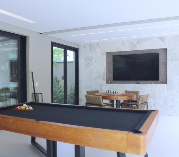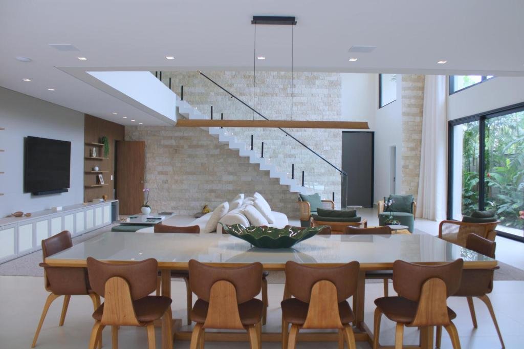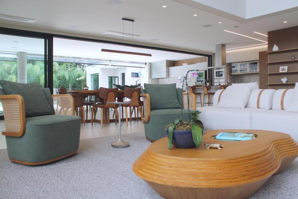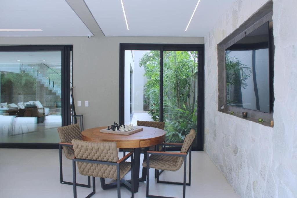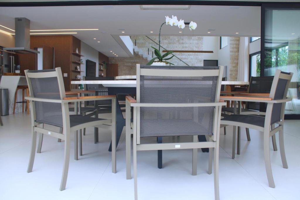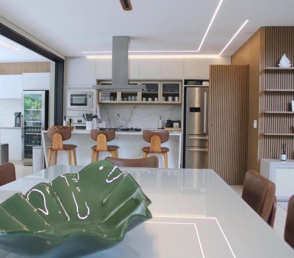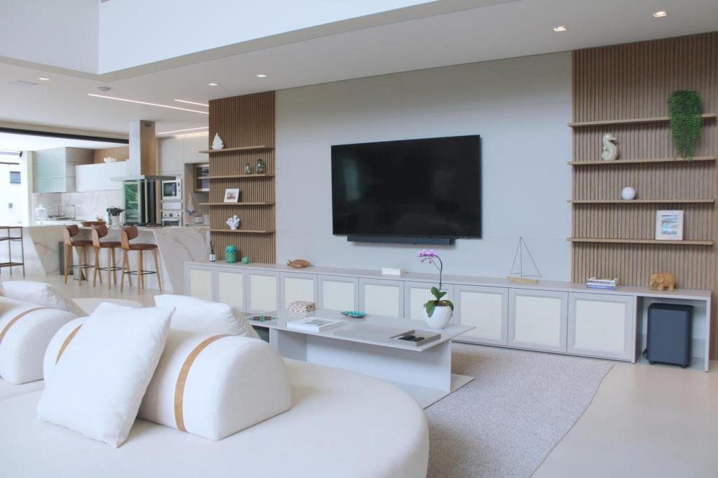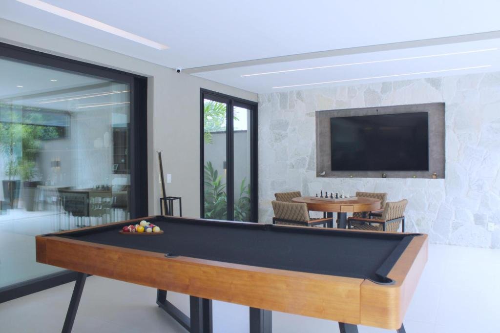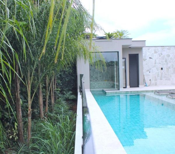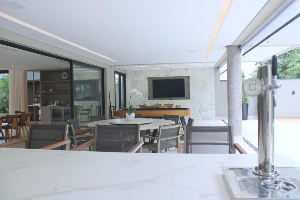 Esta residência imponente foi projetada para acomodar grandes famílias com o máximo de conforto e eficiência. São 6 amplas suítes, todas com acabamentos de altíssimo padrão, além de uma suíte de apoio completa para funcionários (com ar-condicionado), garantindo total discrição e funcionalidade para o dia a dia. A casa é um exemplo de inteligência tecnológica e sustentabilidade: equipada com sistema de energia solar (fotovoltaica), ela oferece alta performance energética para manter todo o conforto com baixo custo. A porta principal conta com fechadura eletrônica, a garagem já possui carregador para carros elétricos e toda a propriedade é protegida por um sistema de monitoramento de última geração. O lazer é o ponto alto deste imóvel, com espaços integrados pensados para o entretenimento: * Piscina Aquecida (59,32 m²): Um oásis com hidromassagem e cascata, perfeito para relaxar em qualquer estação do ano. * Espaço Gourmet & Jogos: Equipado com chopeira profissional, mesa de bilhar e uma adega exclusiva para os apreciadores de vinhos. * Experiência Audiovisual: Um Home Theater dedicado, proporcionando momentos de cinema sem sair de casa. Com 450,36 m² de área construída em um terreno generoso de 617,22 m², o imóvel oferece soluções inteligentes de organização: * Roupeiro estratégico para suporte ao enxoval das suítes. * Lavanderia ampla e funcional. * Ambientes climatizados e com excelente ventilação natural. Além de tudo isso, o imóvel é entregue com o que há de mais sofisticado no mercado de luxo: * Mobiliário Breton: Design e elegância em cada ambiente. * Móveis Planejados Florense: Qualidade impecável com 10 anos de garantia. * Eletrodomésticos Elettromec: Alta performance na cozinha, também com 10 anos de garantia. Ficha Técnica * Dormitórios: 6 Suítes + 1 Suíte de Serviço. * Energia: Sistema Solar Fotovoltaico (Economia e Sustentabilidade). * Área Construída: 450,36 m² | Terreno: 617,22 m². * Piscina: 59,32 m² (Aquecida, Hidro e Cascata). * Tecnologia: Carregador Elétrico, Fechadura Eletrônica e Monitoramento. * Lazer: Home Theater, Adega, Chopeira e Bilhar. * Mobiliário & Planejados: Breton e Florense (10 anos de garantia). * Cozinha: Elettromec (10 anos de garantia).