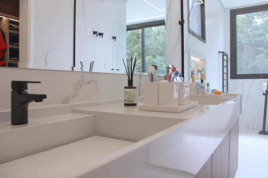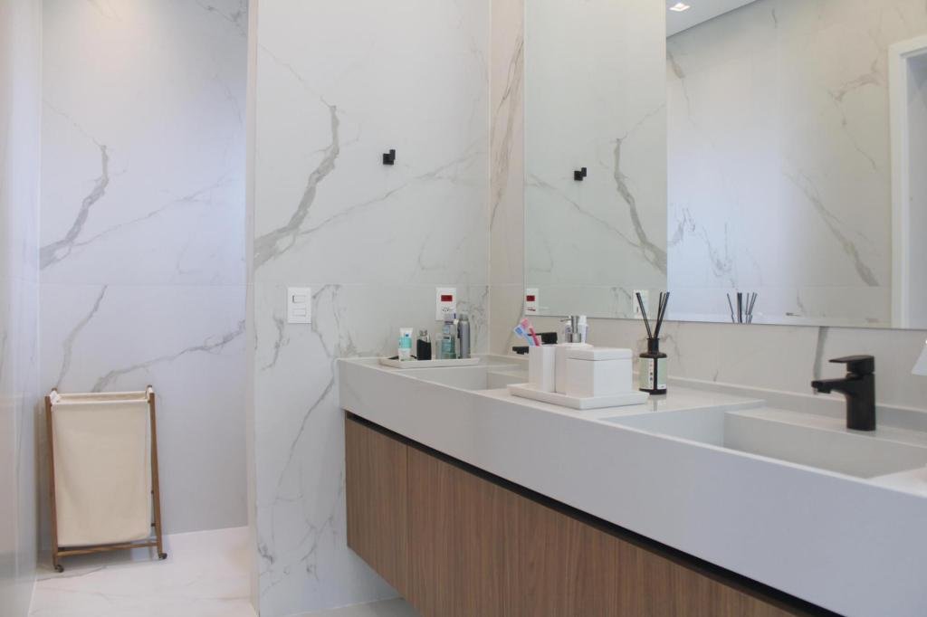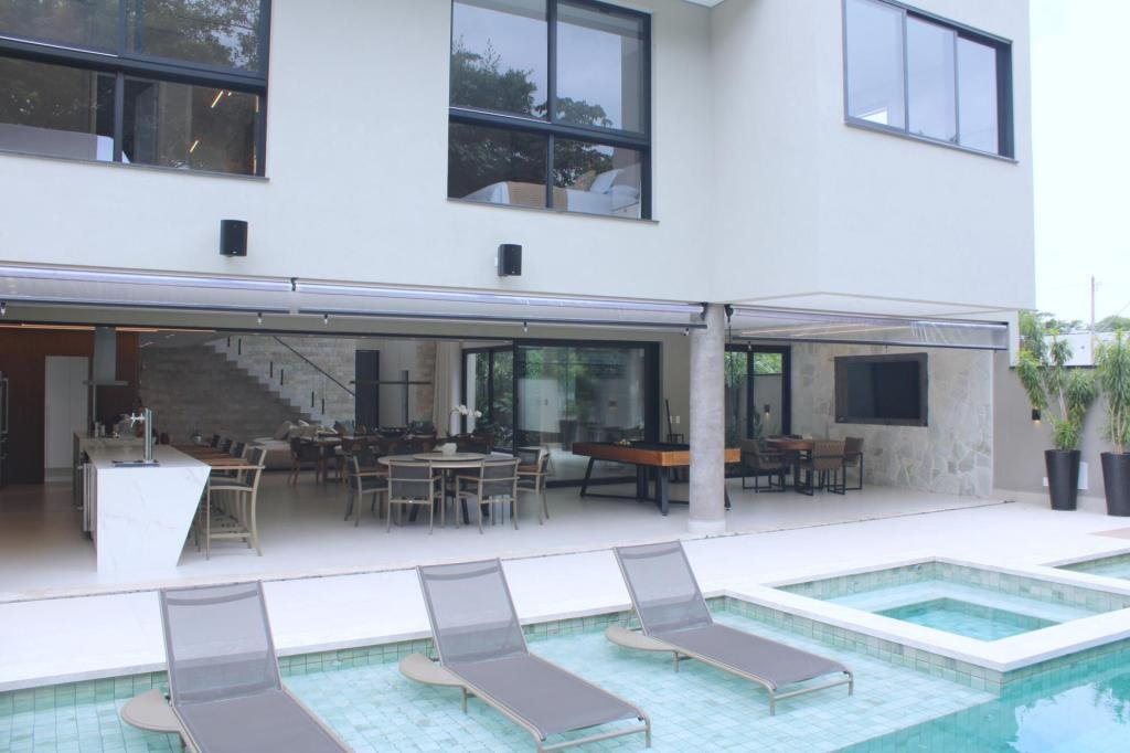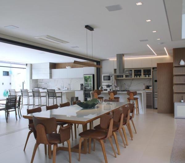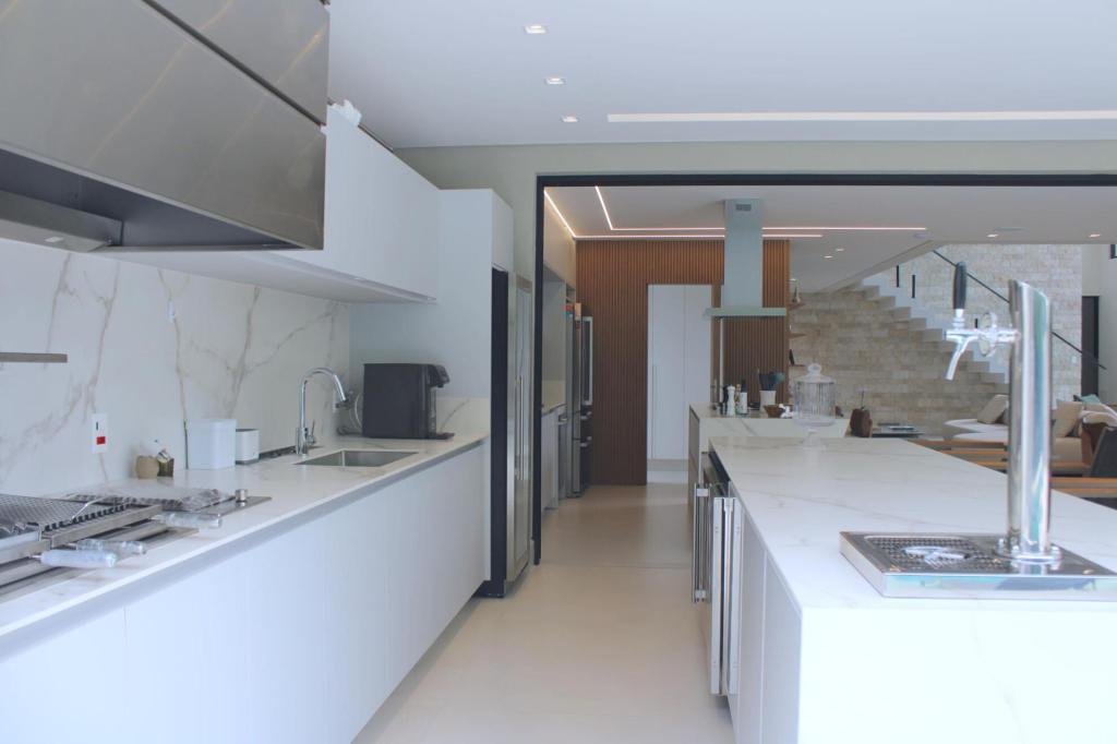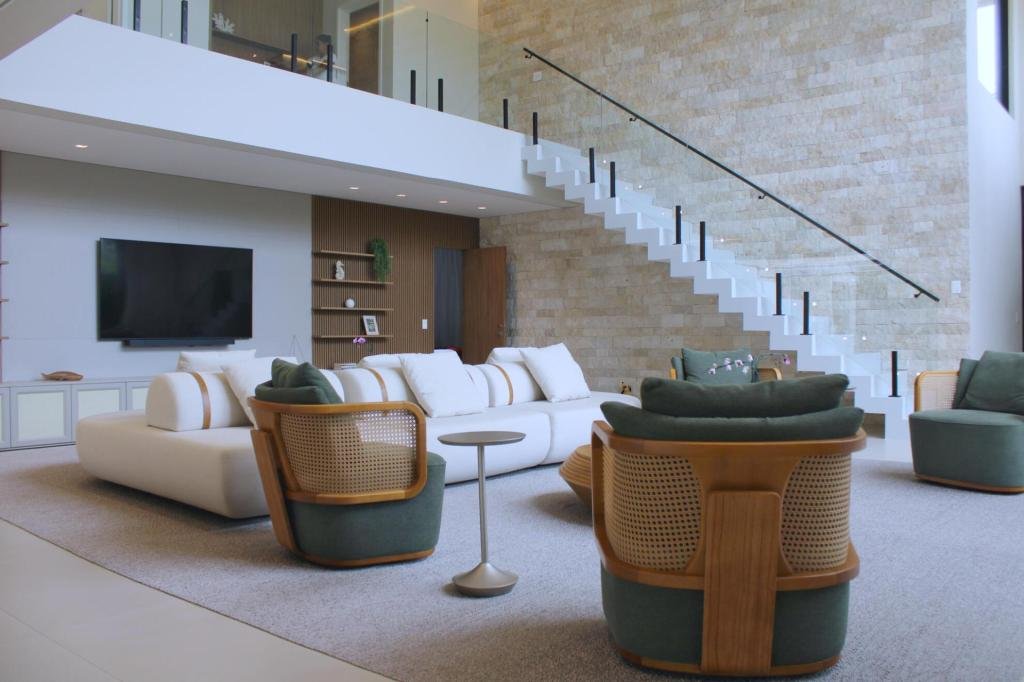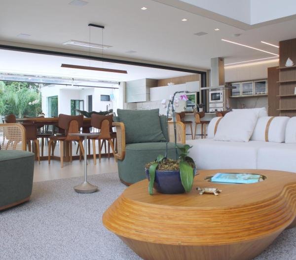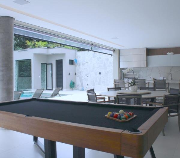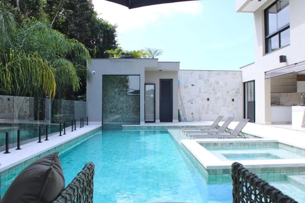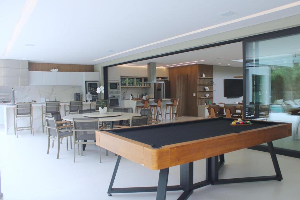 Esta residência imponente foi projetada para acomodar grandes famílias com o máximo de conforto e eficiência. São 6 amplas suítes, todas com acabamentos de altíssimo padrão, além de uma suíte de apoio completa para funcionários (com ar-condicionado), garantindo total discrição e funcionalidade para o dia a dia. A casa é um exemplo de inteligência tecnológica e sustentabilidade: equipada com sistema de energia solar (fotovoltaica), ela oferece alta performance energética para manter todo o conforto com baixo custo. A porta principal conta com fechadura eletrônica, a garagem já possui carregador para carros elétricos e toda a propriedade é protegida por um sistema de monitoramento de última geração. O lazer é o ponto alto deste imóvel, com espaços integrados pensados para o entretenimento: * Piscina Aquecida (59,32 m²): Um oásis com hidromassagem e cascata, perfeito para relaxar em qualquer estação do ano. * Espaço Gourmet & Jogos: Equipado com chopeira profissional, mesa de bilhar e uma adega exclusiva para os apreciadores de vinhos. * Experiência Audiovisual: Um Home Theater dedicado, proporcionando momentos de cinema sem sair de casa. Com 450,36 m² de área construída em um terreno generoso de 617,22 m², o imóvel oferece soluções inteligentes de organização: * Roupeiro estratégico para suporte ao enxoval das suítes. * Lavanderia ampla e funcional. * Ambientes climatizados e com excelente ventilação natural. Além de tudo isso, o imóvel é entregue com o que há de mais sofisticado no mercado de luxo: * Mobiliário Breton: Design e elegância em cada ambiente. * Móveis Planejados Florense: Qualidade impecável com 10 anos de garantia. * Eletrodomésticos Elettromec: Alta performance na cozinha, também com 10 anos de garantia. Ficha Técnica * Dormitórios: 6 Suítes + 1 Suíte de Serviço. * Energia: Sistema Solar Fotovoltaico (Economia e Sustentabilidade). * Área Construída: 450,36 m² | Terreno: 617,22 m². * Piscina: 59,32 m² (Aquecida, Hidro e Cascata). * Tecnologia: Carregador Elétrico, Fechadura Eletrônica e Monitoramento. * Lazer: Home Theater, Adega, Chopeira e Bilhar. * Mobiliário & Planejados: Breton e Florense (10 anos de garantia). * Cozinha: Elettromec (10 anos de garantia).