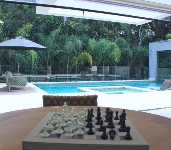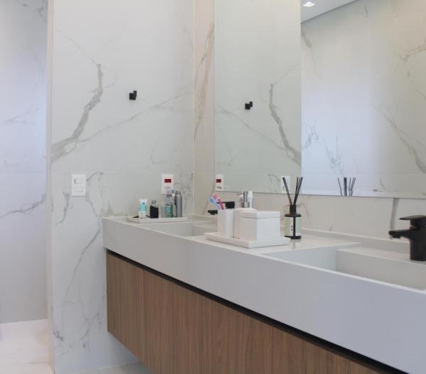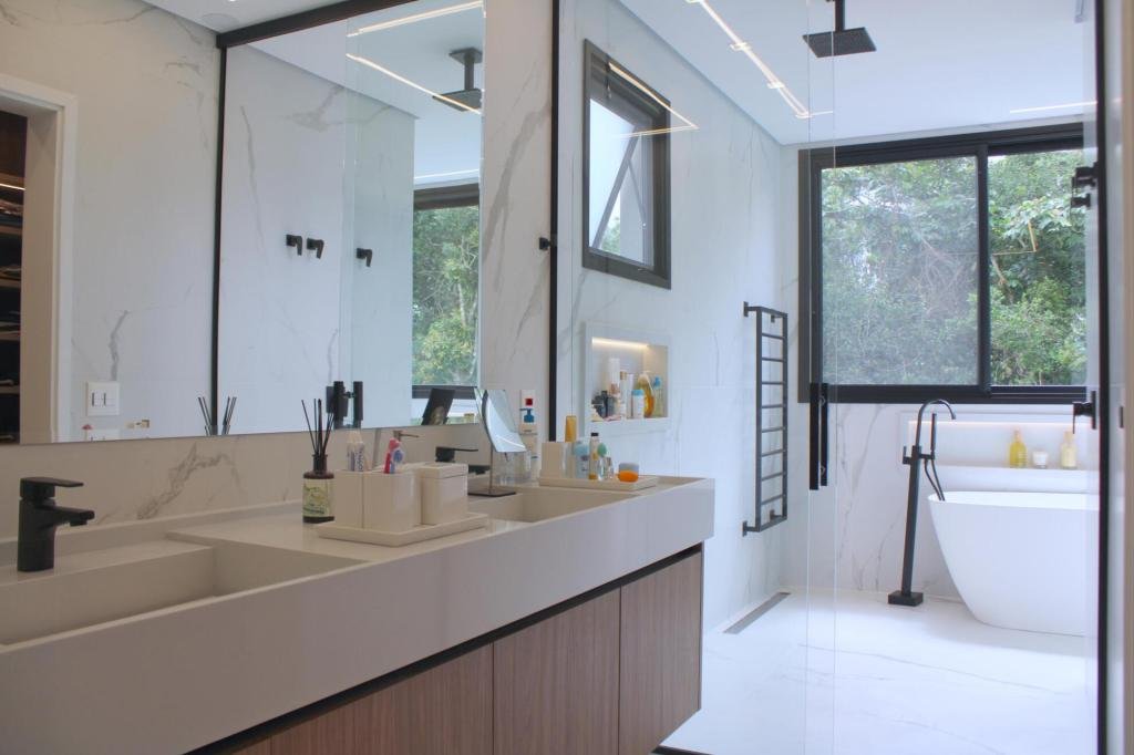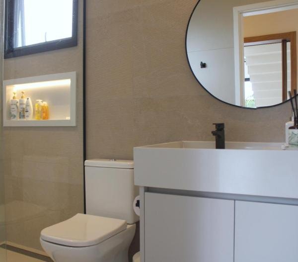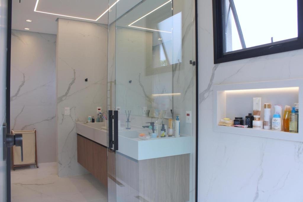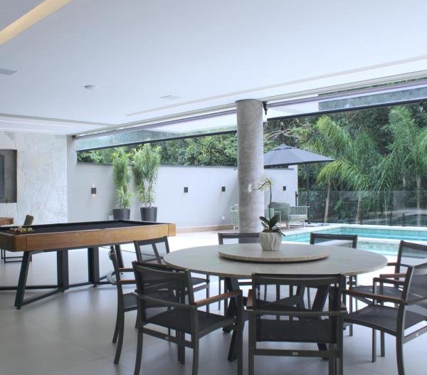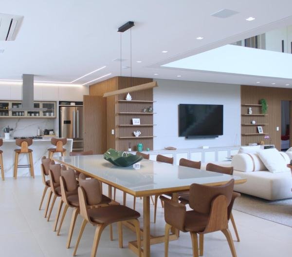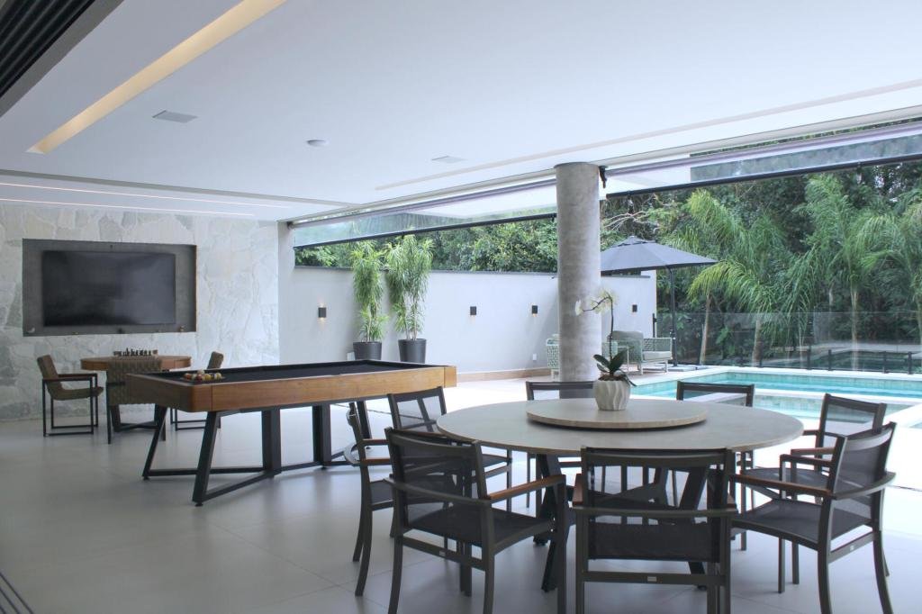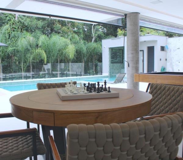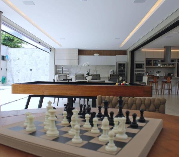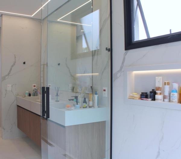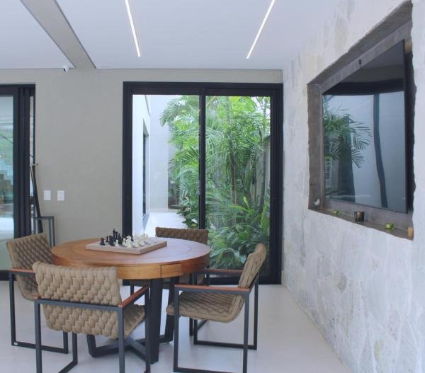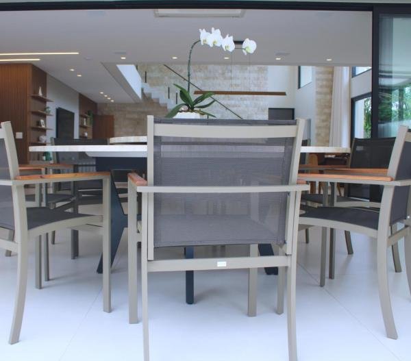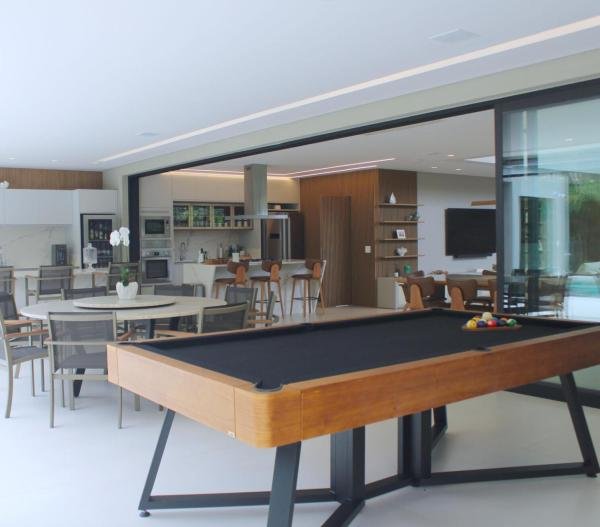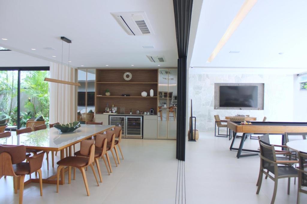 Esta residência imponente foi projetada para acomodar grandes famílias com o máximo de conforto e eficiência. São 6 amplas suítes, todas com acabamentos de altíssimo padrão, além de uma suíte de apoio completa para funcionários (com ar-condicionado), garantindo total discrição e funcionalidade para o dia a dia. A casa é um exemplo de inteligência tecnológica e sustentabilidade: equipada com sistema de energia solar (fotovoltaica), ela oferece alta performance energética para manter todo o conforto com baixo custo. A porta principal conta com fechadura eletrônica, a garagem já possui carregador para carros elétricos e toda a propriedade é protegida por um sistema de monitoramento de última geração. O lazer é o ponto alto deste imóvel, com espaços integrados pensados para o entretenimento: * Piscina Aquecida (59,32 m²): Um oásis com hidromassagem e cascata, perfeito para relaxar em qualquer estação do ano. * Espaço Gourmet & Jogos: Equipado com chopeira profissional, mesa de bilhar e uma adega exclusiva para os apreciadores de vinhos. * Experiência Audiovisual: Um Home Theater dedicado, proporcionando momentos de cinema sem sair de casa. Com 450,36 m² de área construída em um terreno generoso de 617,22 m², o imóvel oferece soluções inteligentes de organização: * Roupeiro estratégico para suporte ao enxoval das suítes. * Lavanderia ampla e funcional. * Ambientes climatizados e com excelente ventilação natural. Além de tudo isso, o imóvel é entregue com o que há de mais sofisticado no mercado de luxo: * Mobiliário Breton: Design e elegância em cada ambiente. * Móveis Planejados Florense: Qualidade impecável com 10 anos de garantia. * Eletrodomésticos Elettromec: Alta performance na cozinha, também com 10 anos de garantia. Ficha Técnica * Dormitórios: 6 Suítes + 1 Suíte de Serviço. * Energia: Sistema Solar Fotovoltaico (Economia e Sustentabilidade). * Área Construída: 450,36 m² | Terreno: 617,22 m². * Piscina: 59,32 m² (Aquecida, Hidro e Cascata). * Tecnologia: Carregador Elétrico, Fechadura Eletrônica e Monitoramento. * Lazer: Home Theater, Adega, Chopeira e Bilhar. * Mobiliário & Planejados: Breton e Florense (10 anos de garantia). * Cozinha: Elettromec (10 anos de garantia).