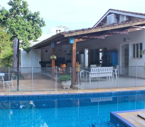 Imagine viver em um dos módulos mais desejados da Riviera de São Lourenço, em uma bela casa térrea que une conforto, luxo e uma conexão sem igual com a natureza. Com impressionantes 240,51 m² de área construída em um terreno espaçoso de 888,30 m², esta residência foi projetada para quem busca privacidade e bem-estar. 5 suítes impecáveis, todas com ar-condicionado, garantindo o máximo de conforto e privacidade para toda a família e seus convidados. O living para 2 ambientes e um charmoso mezanino criam espaços amplos e acolhedores, perfeitos para momentos de convívio ou relaxamento. A cozinha tradicional com armários e a área de serviço garantem a praticidade no dia a dia. Prepare-se para viver momentos inesquecíveis! A varanda com churrasqueira se integra harmoniosamente à área verde, convidando a celebrações ao ar livre. Mergulhe na piscina aquecida, refresque-se na ducha e sinta-se em um verdadeiro resort particular. E o melhor: desfrute de um verdadeiro pomar com mais de 50 tipos de frutas plantadas, incluindo graviola, cacau, acerola, ameixa do campo, jabuticaba e muito mais! Tenha frutas frescas da sua própria casa, um convite à vida saudável e ao contato direto com a natureza. A propriedade conta ainda com uma edícula, sendo uma suíte, ideal para quem precisa de um espaço para home office, ateliê ou até mesmo uma suíte de apoio.