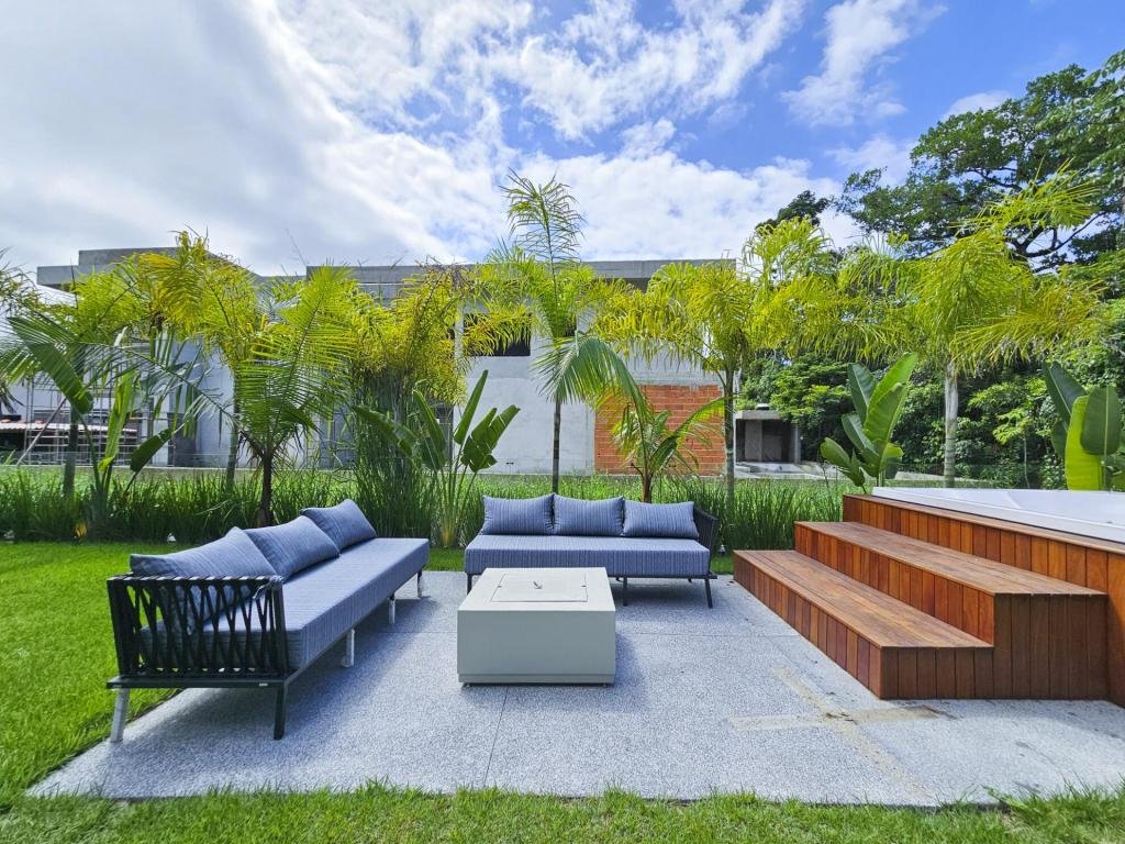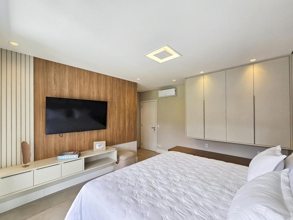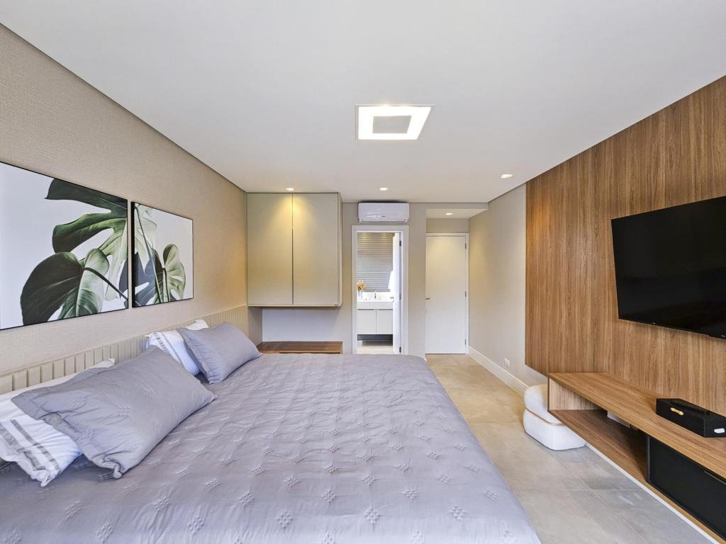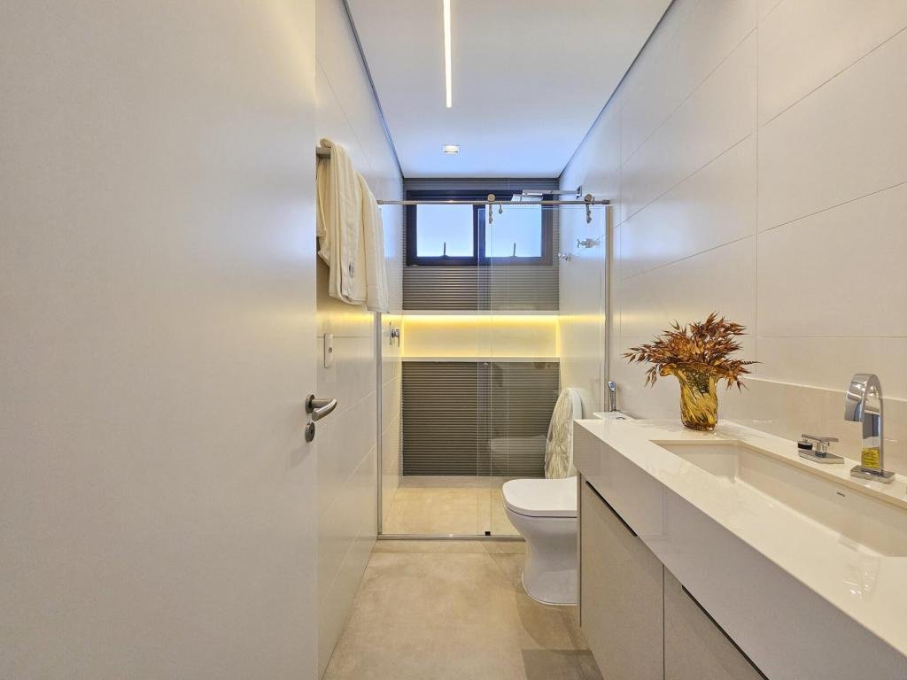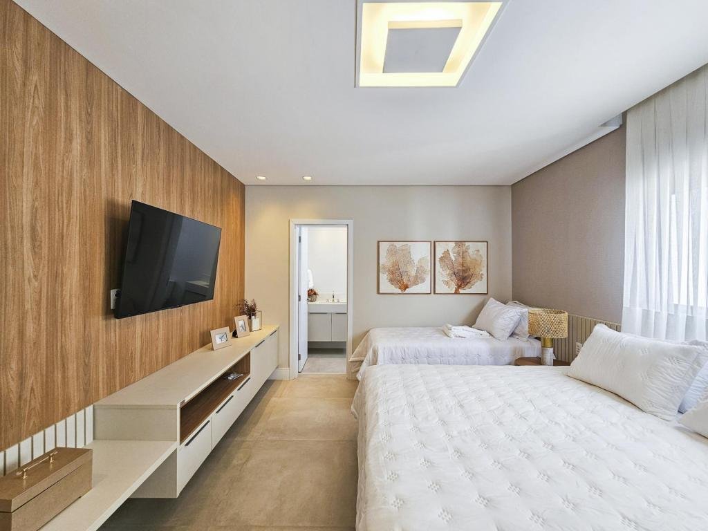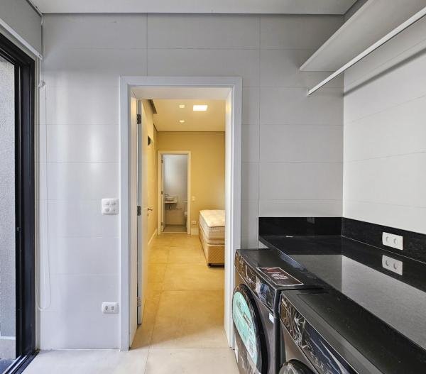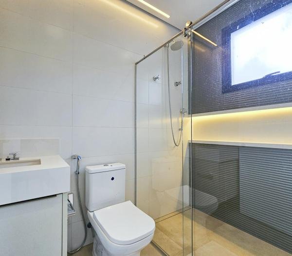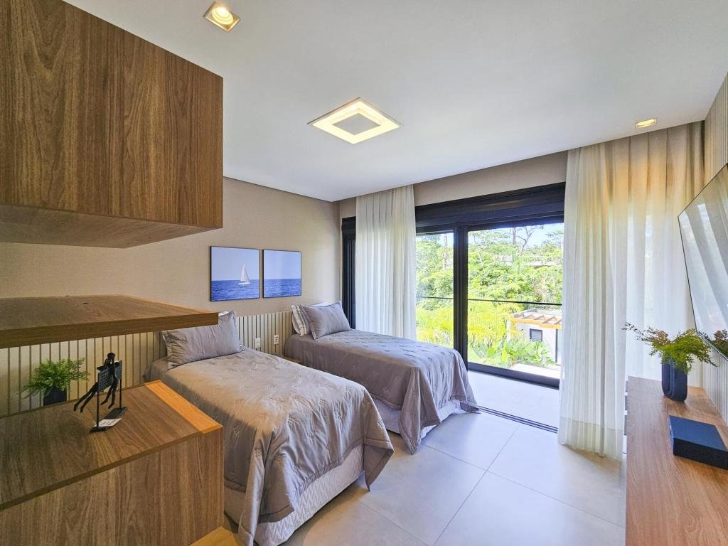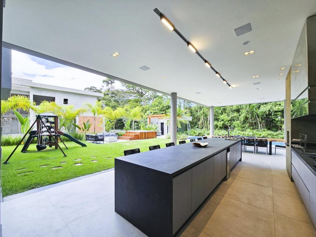 Majestosa e exuberante, é a definição para essa mansão, conta com 7 suítes, sendo uma no térreo, todas com armários embutidos e ar-condicionado, dentre elas, uma suíte master com closet e banheira (WCs Sr. e Sra), 2 pavimentos, living para 3 ambientes, com ar-condicionado, persianas automáticas, porta de entrada com fechadura eletrônica, lavabo, adega, cozinha americana, com armários, completa. Possui dormitório e WC de empregada, depósito, área de serviço, 6 vagas de garagem e uma copa no pavimento superior. Sua área de lazer oferece, piscina aquecida, climatizada e integrada com a sauna, jacuzzi, energia solar, churrasqueira e forno de pizza integrada com a cozinha, chopeira, playground, lavabo e sistema de monitoramento. A área construída é de 622,38 m2 em um terreno de 752,25 m2. A casa está toda mobiliada com móveis da kitchens, desde banheiros, quartos, cozinha e etc....Pisos e revestimentos da Portobello, bancadas em Dekton e metais Docol.