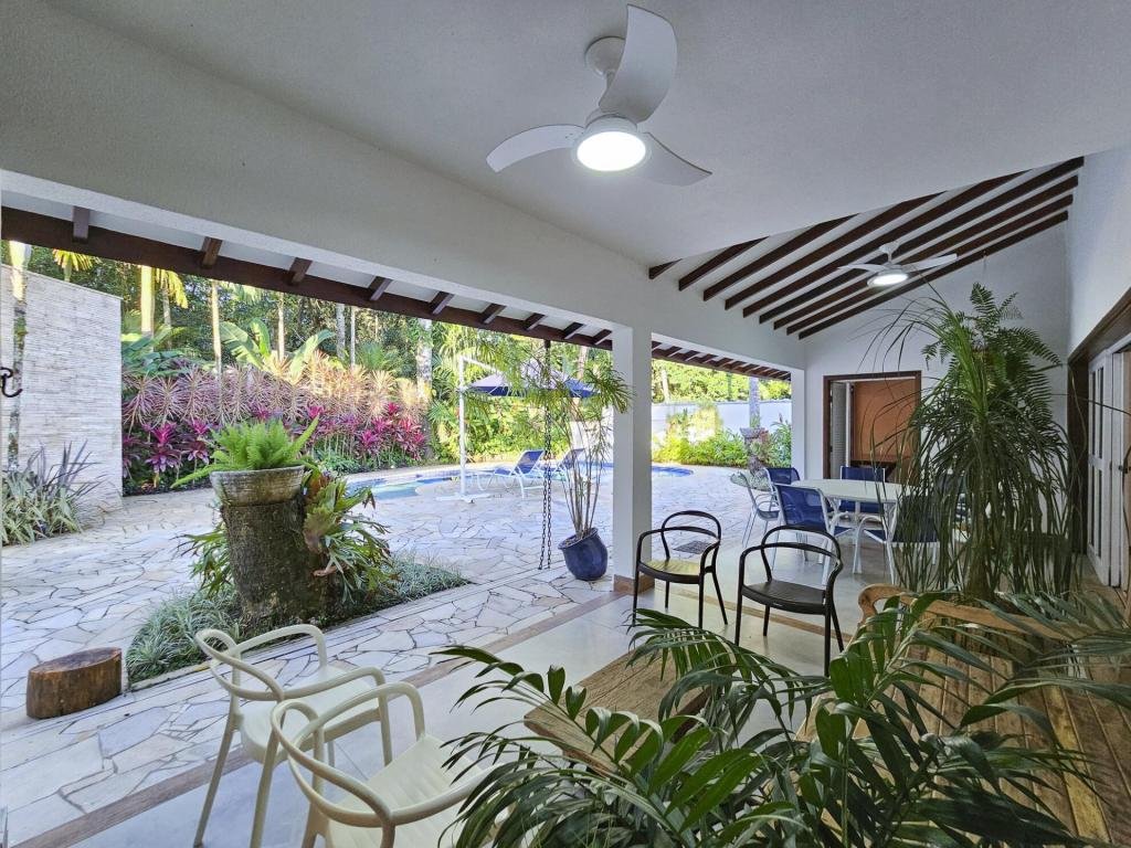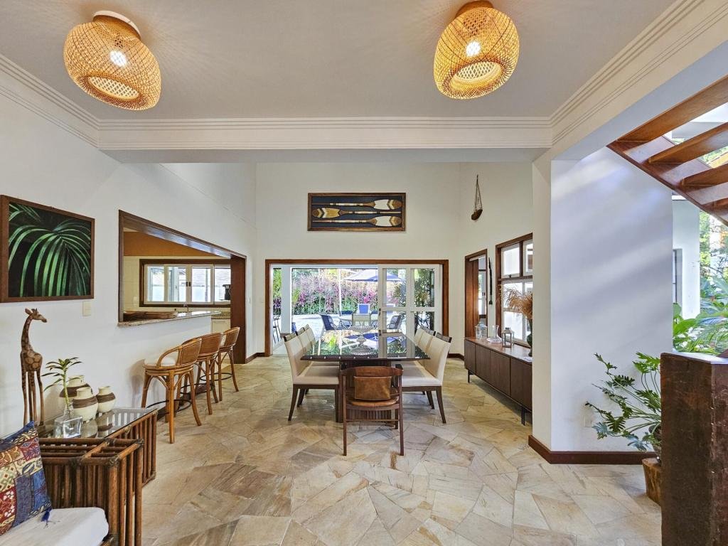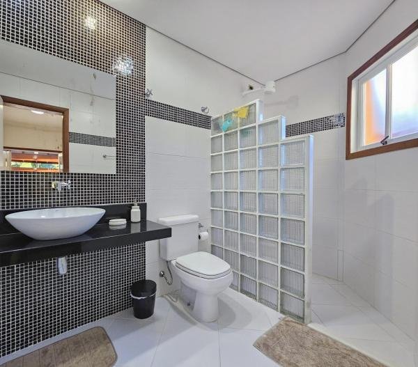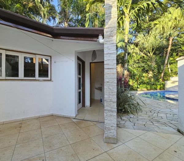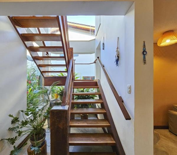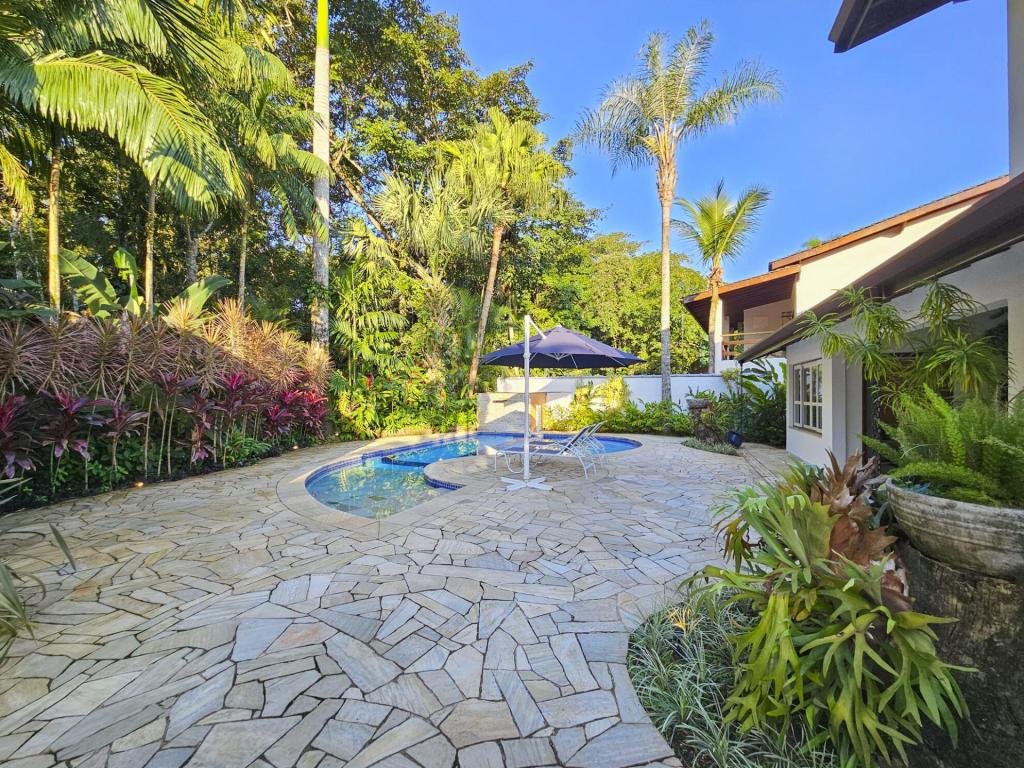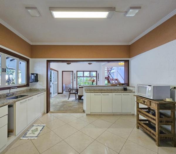 Belíssima casa assobradada, bem arejada, localizada em rua larga, contendo 4 suítes amplas, sendo uma no térreo, com ar-condicionado, living para 2 ambientes, lareira, sala de TV, lavabo, 4 vagas de garagem, cozinha americana, edícula, depósito, área de serviço, piscina com cascata, área gourmet com churrasqueira e forno a lenha. Sua área construída é de 339,20 m2 em um terreno grande de 576,67 m2.