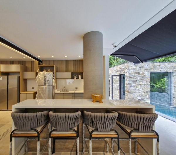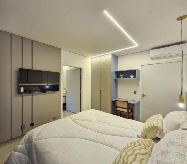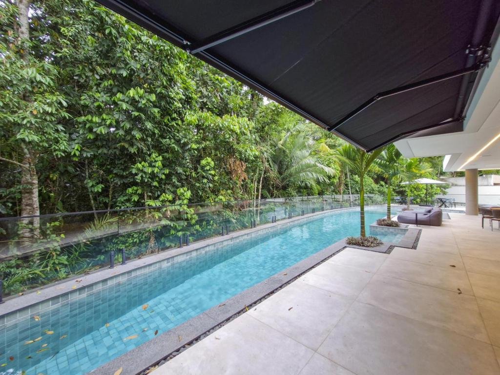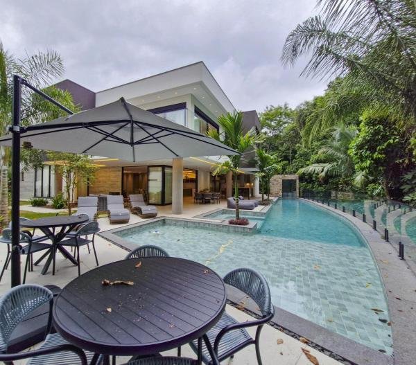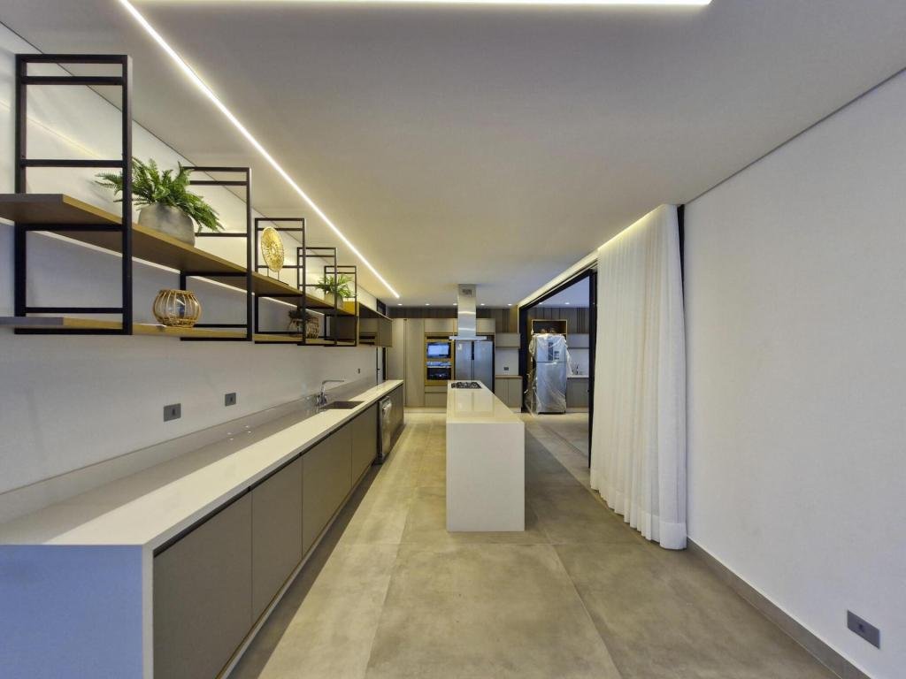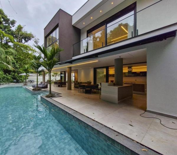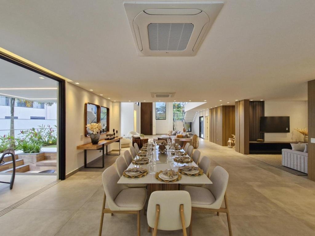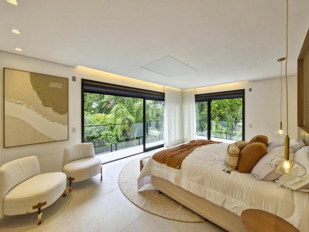 Esta residência extraordinária, nunca habitada, mobiliada e finamente decorada é o ápice do luxo e sofisticação, perfeita para quem deseja viver em grande estilo. Com 7 suítes espaçosas, sendo uma suíte no térreo com 19,00 m² é um diferencial bem-vindo. No entanto, a suíte master é um verdadeiro santuário: com banheira aquecida a gás para momentos de puro relaxamento, dois chuveiros de teto para um banho revigorante, duas elegantes pias e uma vista inspiradora para a área verde. Além disso, contém uma suíte de apoio para funcionários. Com equipamentos de alta qualidade, sistema de som JBL e sistema de monitoramento, a casa transborda segurança e exuberância. A área de lazer é espetacular, conta com uma prainha, spa, iluminação, climatizada, hidromassagem que integram a sua piscina aquecida de 96,75 m² que, por sua vez, remete a um resort. A casa ainda possui praça de fogo, energia solar fotovoltaica, churrasqueira e lavabo. Com 773,86 m² de terreno e 603,60 m² de área construída, a casa ainda oferece 4 vagas de garagem, sendo 2 cobertas. Diferenciais: Pergolado descoberto com 12,64 m² / Ar-condicionado Split LG / Hall de entrada / Sala de estar ampla com pé direito duplo de 6 metros / Cortina automática / Porta de entrada com ripado de alumínio na tonalidade de madeira / Fechadura eletrônica / Lavabo interno com iluminação natural / Cozinha americana com móveis planejados / Ilha e bancada área molhada e seca toda revestida com Dekton / Sala de TV / Sala de jantar com mesa ampla que acomoda 12 pessoas / Copa no pavimento superior com pia, microondas e frigobar / Todos esses ambientes bem climatizados por dois ar-condicionados cassete LG de 4 vias / Residência inteligente que funciona por meio de dispositivos que permitem a automação de tarefas rotineiras, como ligar o ar-condicionado ou colocar uma música para tocar, ou seja completa / Teto com iluminação em led / Sauna úmida revestida com pedra natural nas paredes externas / Solarium com espreguiçadeira e ducha / Churrasqueira com ilha revestida com Dekton, integrada com a cozinha / Mesa redonda para 6 pessoas / Flap tv / Lavabos (interno/externo) / Área de jardim / Espaço zen / Móveis planejados da Todeschini, desde banheiros, quartos, cozinha e área gourmet / Pisos e revestimentos da Portobello / Revestimento piscina: Pastilha Strufaldi 10x10cm / Eletrodomésticos: Electrolux / Metais: Docol / Calçada Frontal / Passeio - Revestido com mosaico português / Esquadrias de portas, janelas, painéis fixos: Material alumínio na cor preta.