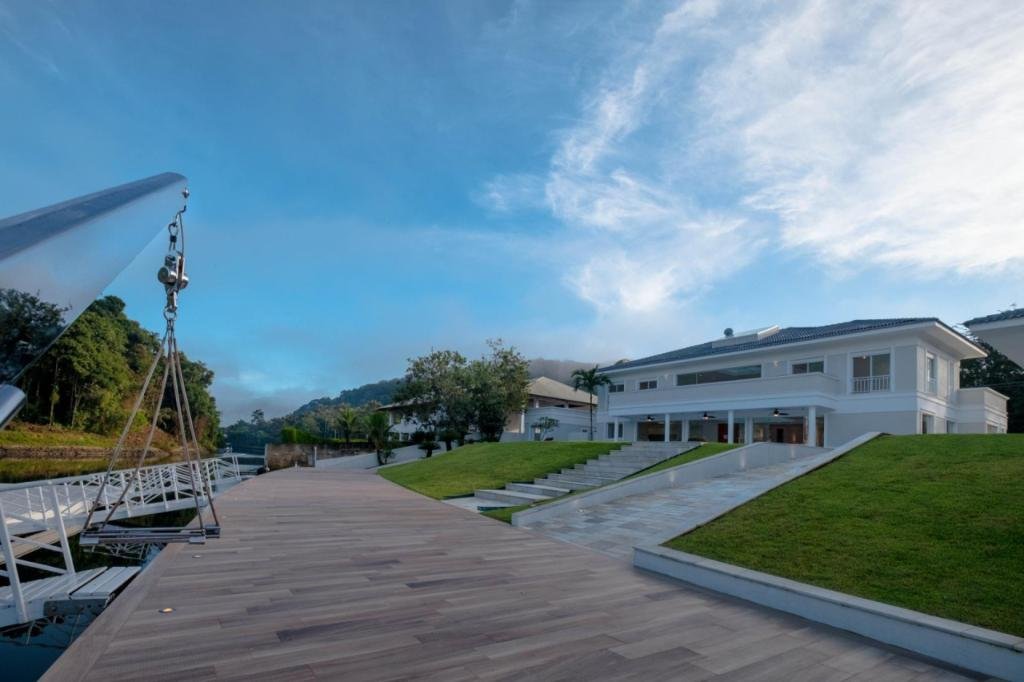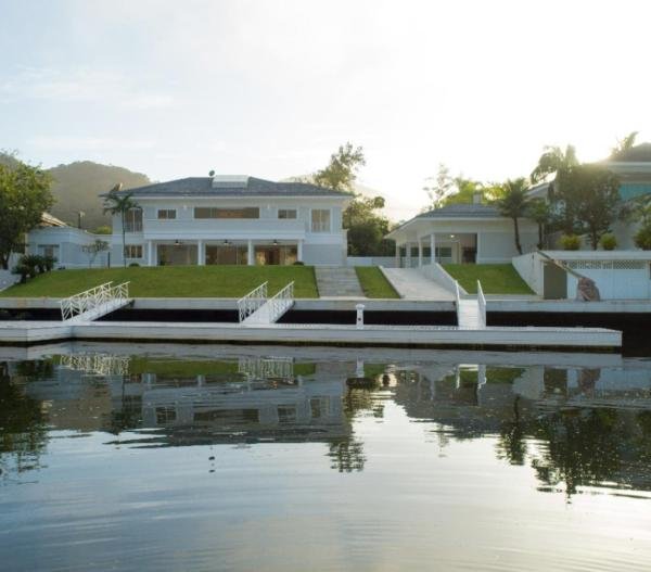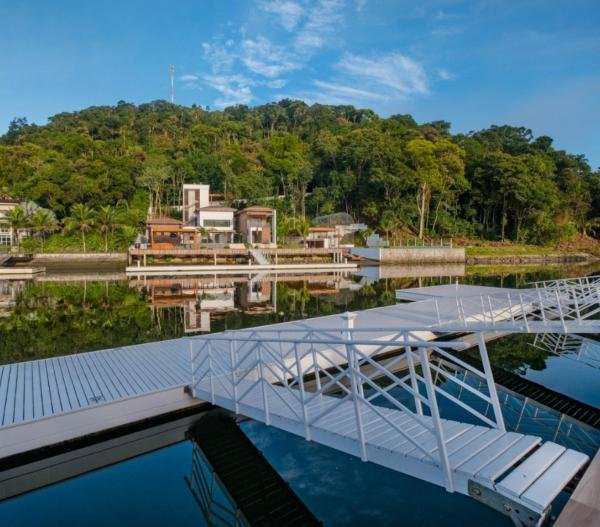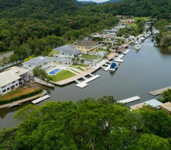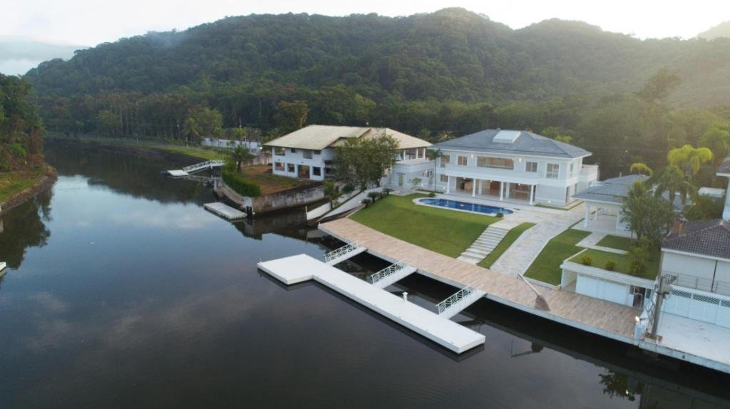 Excelente casa para lazer náutico com ótima estrutura no condomínio Marina Guarujá. A propriedade foi construída em um terreno de 1.850 m² e dispõe de belas suítes, varandas voltadas ao canal, living para vários ambientes. Pé direito duplo, cozinha americana, ambientes com ar-condicionado e central de água quente para toda a casa. Destaque para a rampa para barco de até 28 pés, com guincho de 10 toneladas para colocação e retirada da água e garagem náutica para jets sky, com torre motorizada para colocação e retirada de até 450 quilos. A área de lazer é composta por piscina, salão de festas com banheiro, sauna úmida e quintal. Detalhes do imóvel: Área construída: 750,00 m² + 250,00 m² - Deck e arruamento para acesso da rua até o deck e garagem náutica, totalizando 1.000,00 m². São 4 suítes, sendo uma master, com hidromassagem e armários embutidos + suíte para motorista, segurança ou babá + home theater com banheiro completo, podendo ser reversível como suíte para idosos opcionalmente. Condomínio com infraestrutura completa, segurança, portaria social, portaria náutica e zeladoria. Deseja saber mais informações, entre em contato conosco!