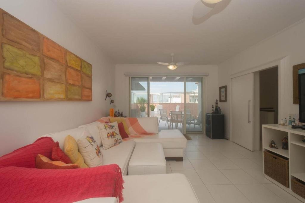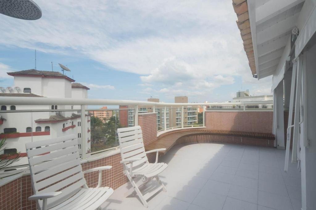 Cobertura duplex, pé na areia. Pav. tipo 3 dormitórios, sendo 1 suíte com armários embutidos, ar condicionado, lavabo, living p/ 2 ambientes, cozinha tradicional com armários, completa, área de serviço, dormitório e wc de empregada. Cobertura: 1 suíte, também com armário embutido e ar condicionado, cozinha, churrasqueira, piscina, sauna e ducha. Possui 3 vagas de garagem, área útil de 333,47 m2 e está mobiliado.