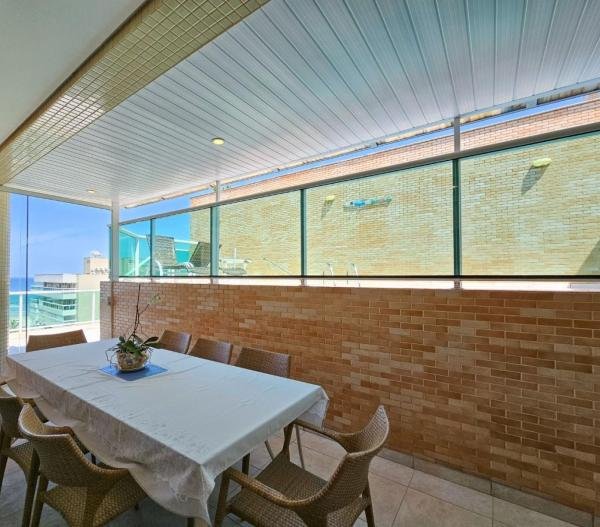 Cobertura de luxo no Módulo 7 da Riviera de São Lourenço com 267,40m² de área útil. Este imóvel dispõe de 4 quartos, incluindo 3 suítes, e 3 vagas de garagem. A sala de estar é ampla, a cozinha é completa e há uma área de serviço conveniente. O condomínio oferece diversas opções de lazer, incluindo uma piscina para dias de relaxamento, uma sauna para descontrair, churrasqueira para encontros ao ar livre, playground para crianças, salão de jogos e salão de festas para entretenimento. Esta cobertura é o local perfeito para viver com conforto e sofisticação na deslumbrante Riviera de São Lourenço.